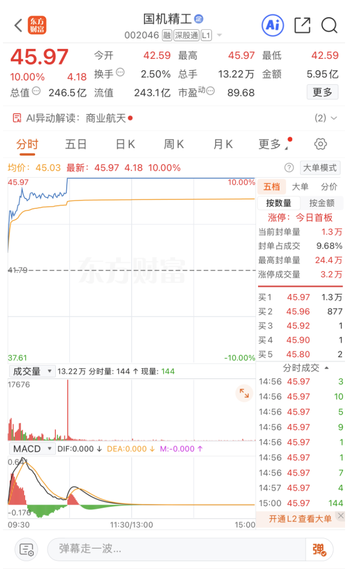 值得关怀的是,4月8日,国机精工股价强势涨停,报收45.97元/股。