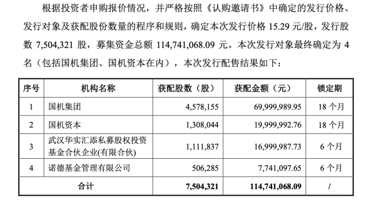 另外两名参与认购的机构投资者为武汉华实汇添私募股权投资基金结伙企业(有限结伙)、诺德基金管束有限公司,分辨别购1700万元、774万元的股份。