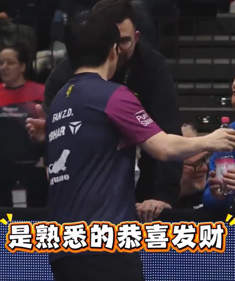 此外,在樊振东对阵西蒙高茨局间休息,现场倏得响起《恭喜发家》的BGM(配景音乐),不雅众举着福字随着旋律扭捏,中国年味径直飘满欧洲赛场。
