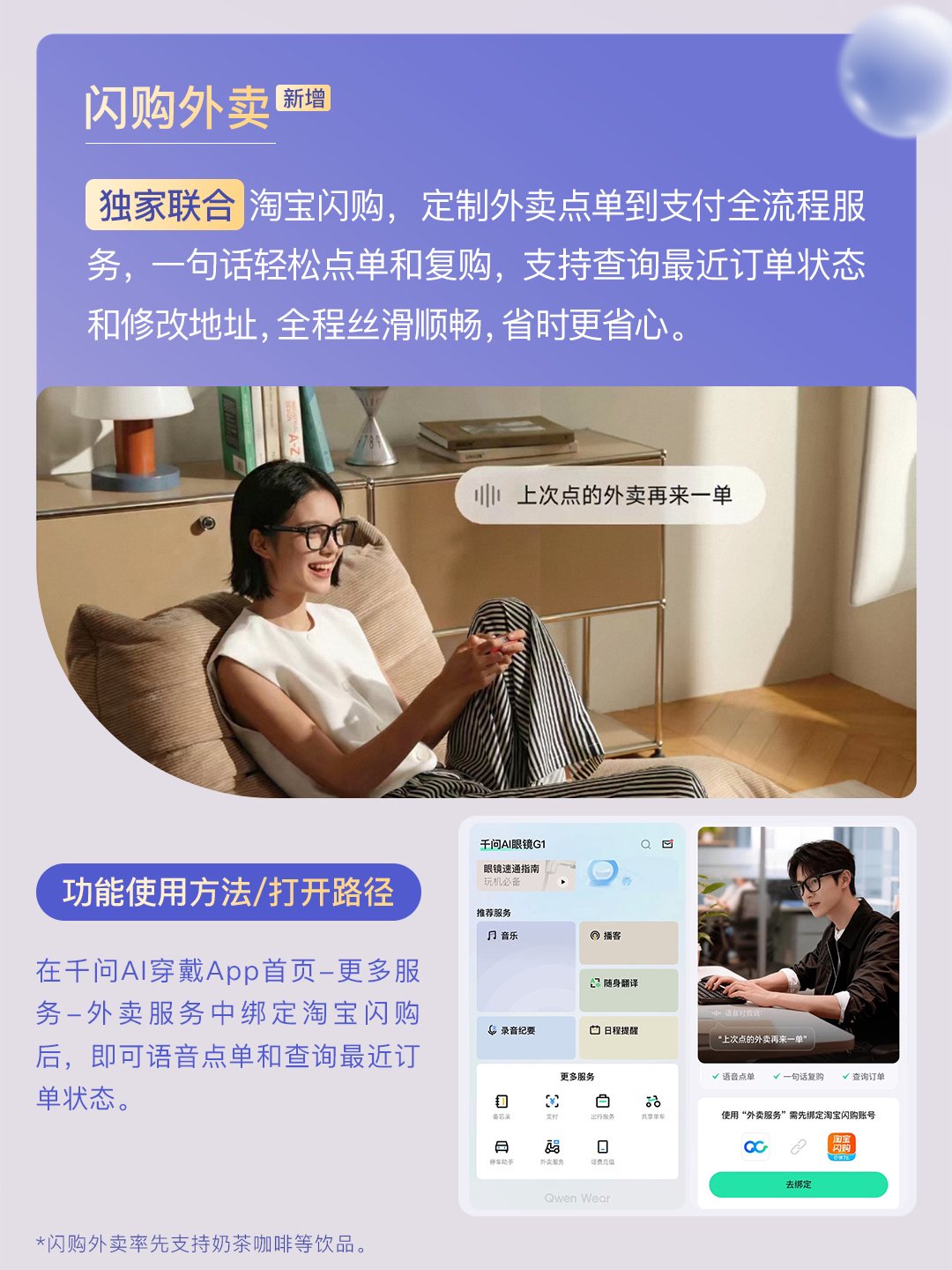 IT之家 4 月 2 日音问,4 月 2 日,千问 AI 眼镜发布后初次进行 OTA 升级,上线首批“AI 办事”才调,何况深度接入淘宝闪购、支付宝,支援话费充值、扫码骑车、泊车缴费、语音点外卖等高频生存服务。