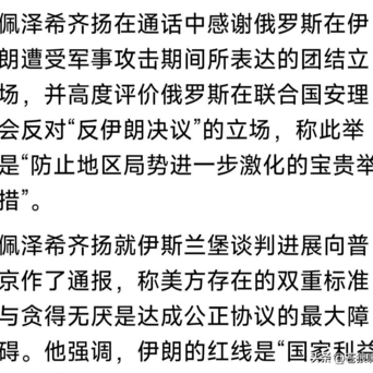 佩泽希皆扬在通话中,感谢俄在好意思以蹙迫伊朗手艺,对伊朗的强项支柱!向普京总统通报好意思伊道判情况,重申伊朗态度,驳诘好意思方双标与浩繁无涯。