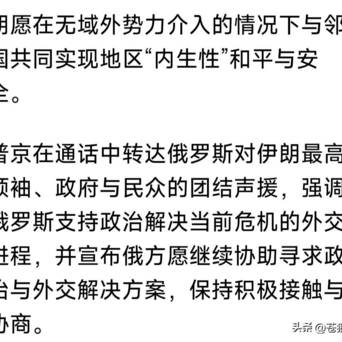 普京总统转达俄罗斯,对伊朗最高首领与政府,以及环球协作的声援,强调支柱政事处分现时危境,并愿为此提供匡助,保握协商并寻求处分决议。