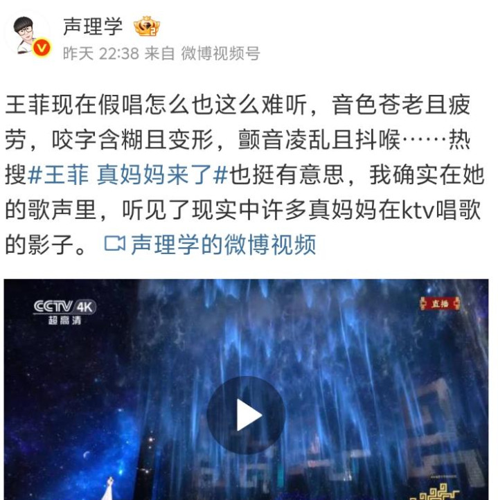 旧年报复她假唱的百万粉博主声理学又出来带头质疑她。